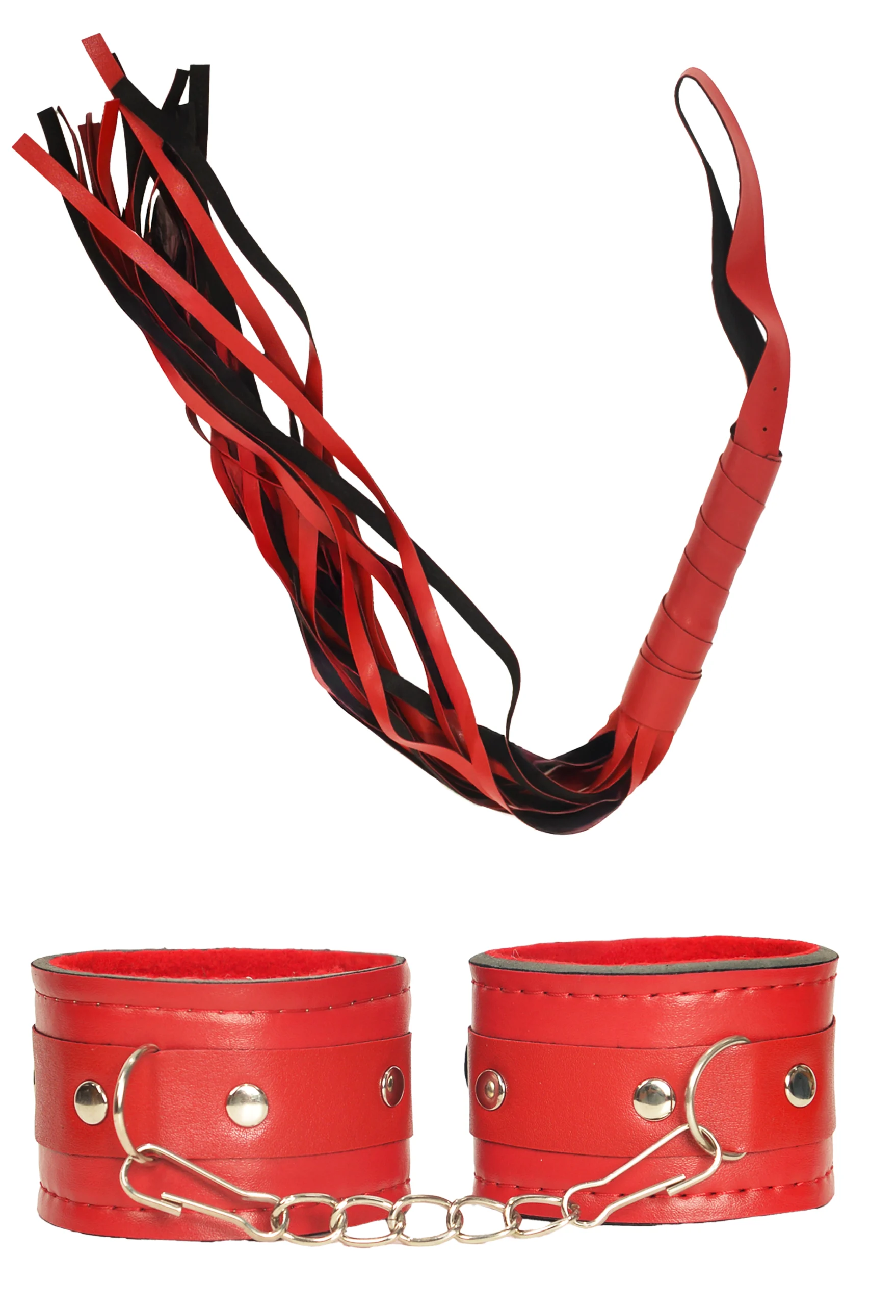 Fantezi Aletleri – Seks Kelepçesi ve Deri Kırbaç Seti – Kırmızı