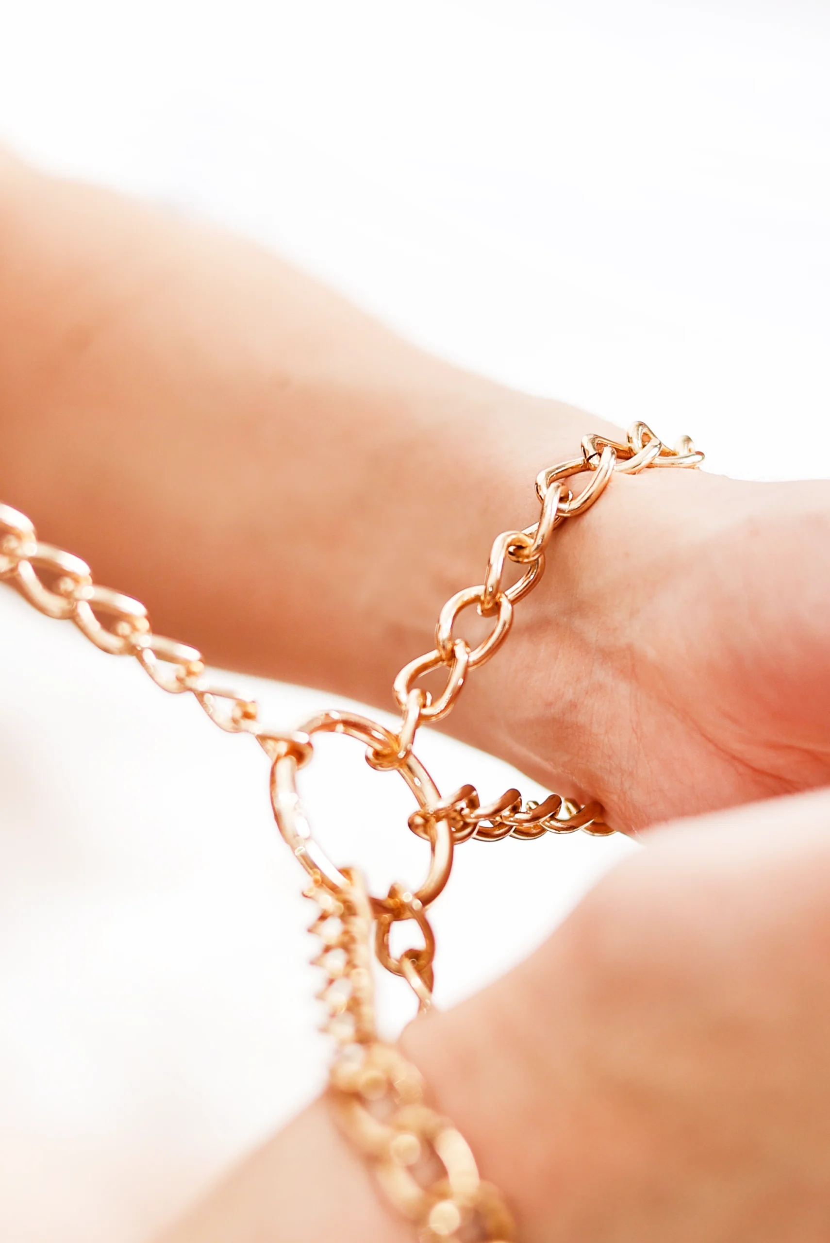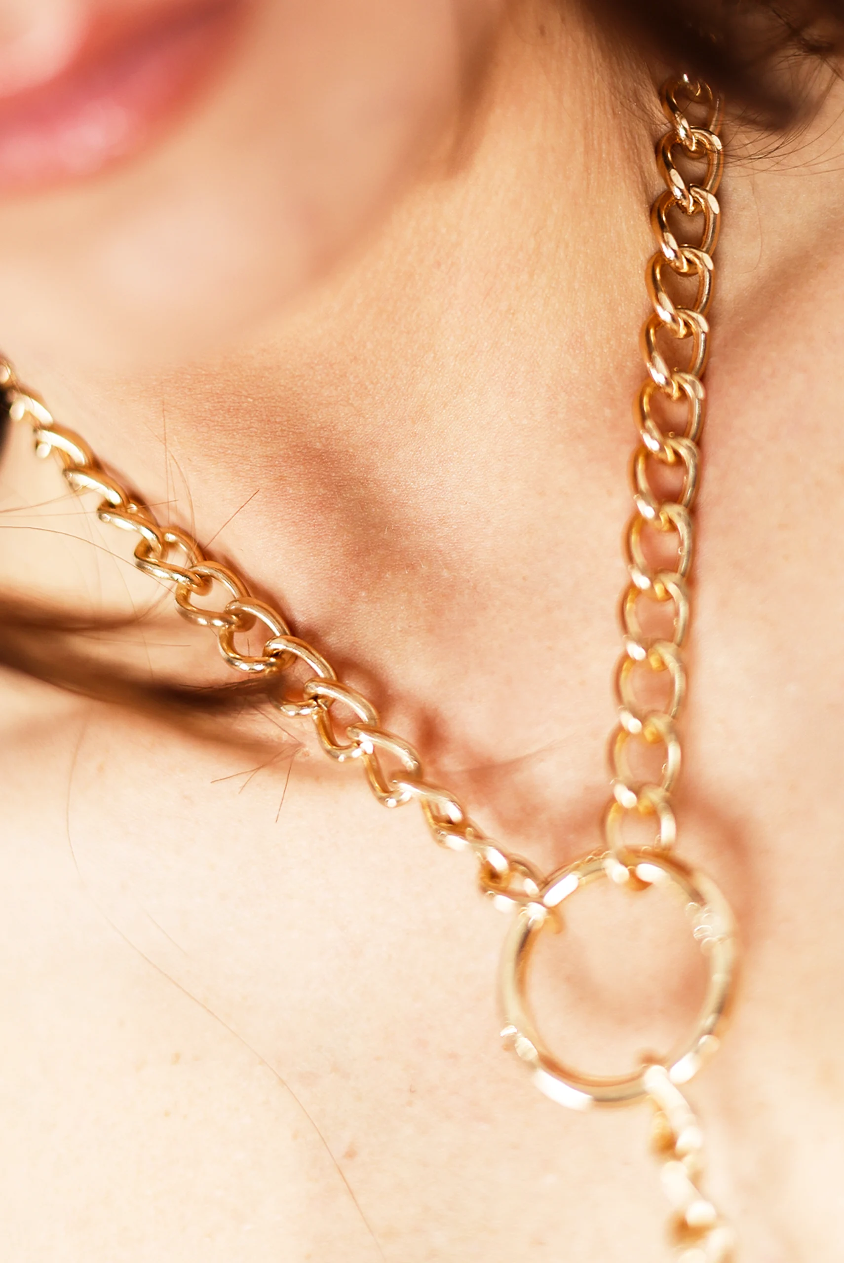 - Altın renkli şık zincirli tasma ve bilek kelepçesi
