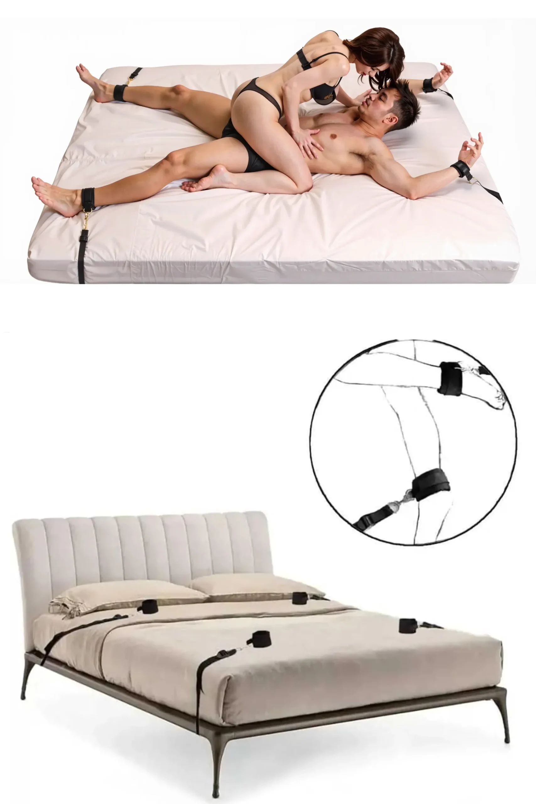 - Dört adet kelepçesiyle birlikte gelen bu set, farklı pozisyonlara uyum sağlayarak kişisel tercihlerinize göre kullanılabilir. Kelepçelere bağlı olan kayışlar, uzunluk ayarı yapılabilir şekilde tasarlanmıştır ve oldukça sağlamdır.