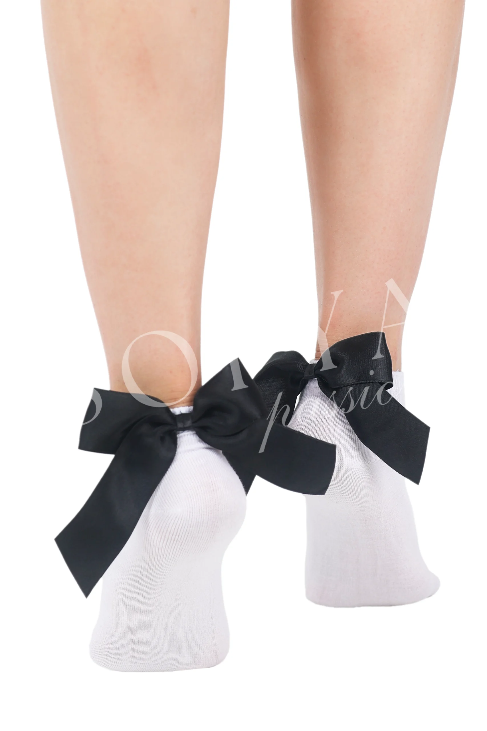 Kadın Bambu Soket Çorap – Siyah Fiyonklu – Beyaz