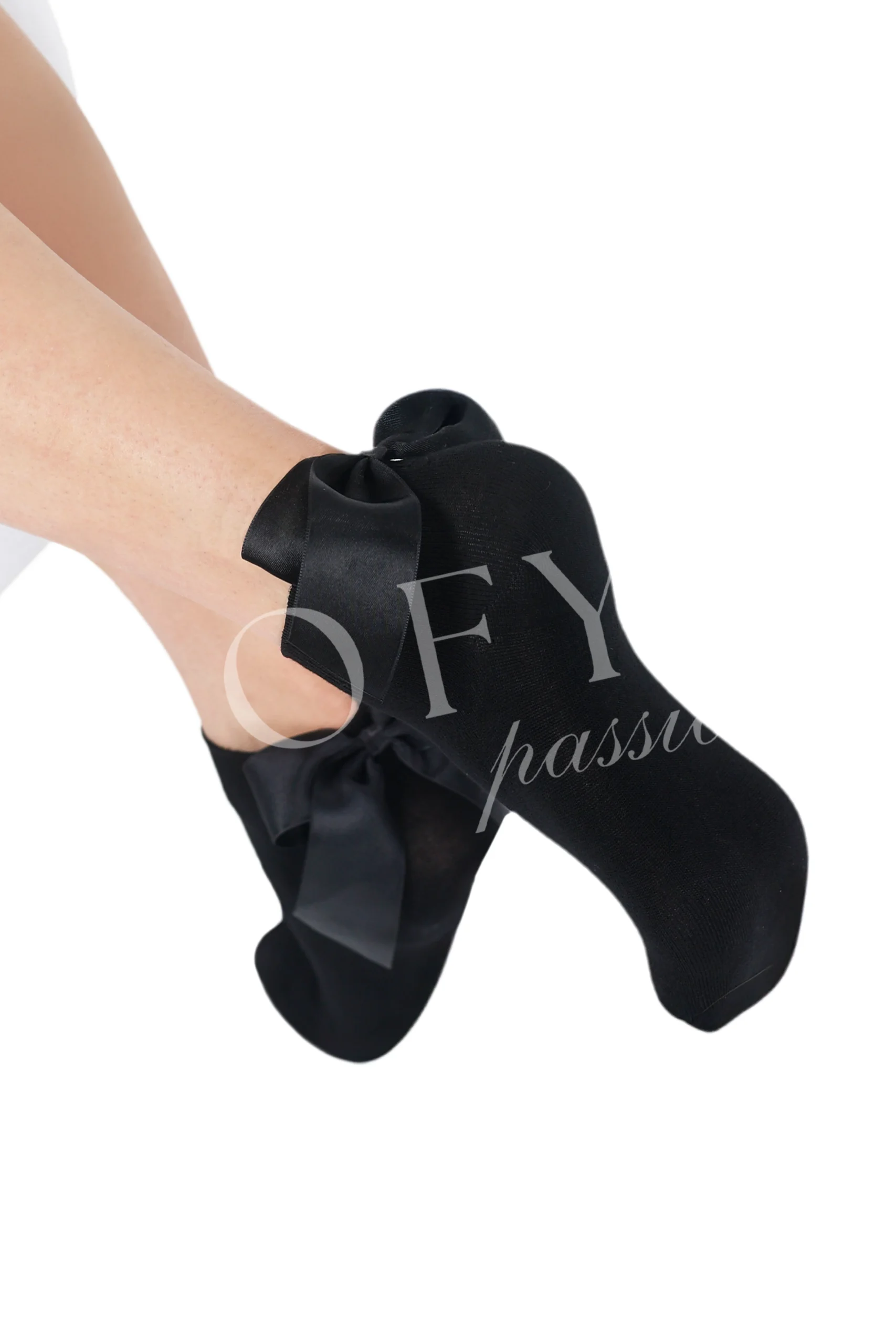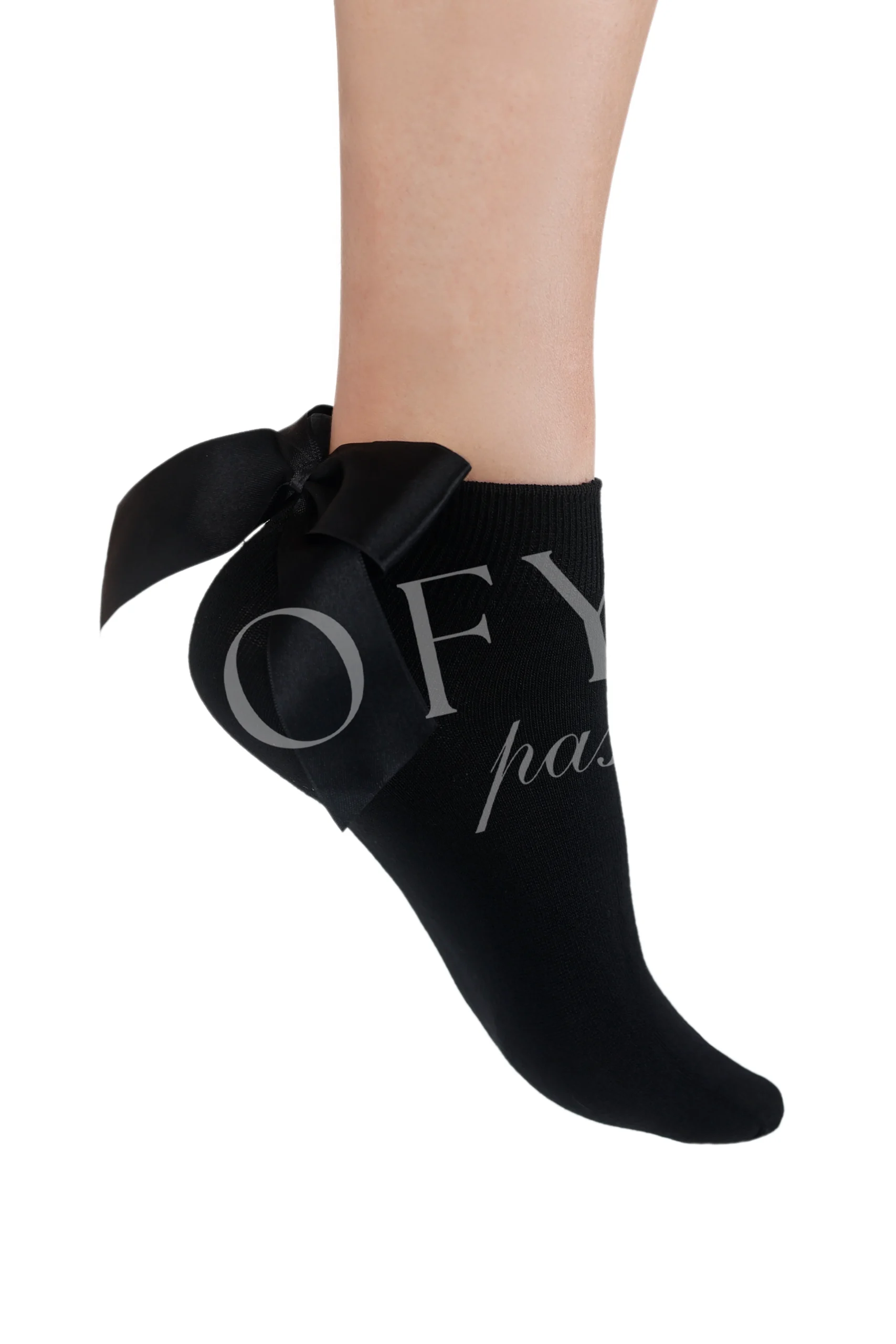 Kadın Bambu Soket Çorap – Fiyonklu – Siyah